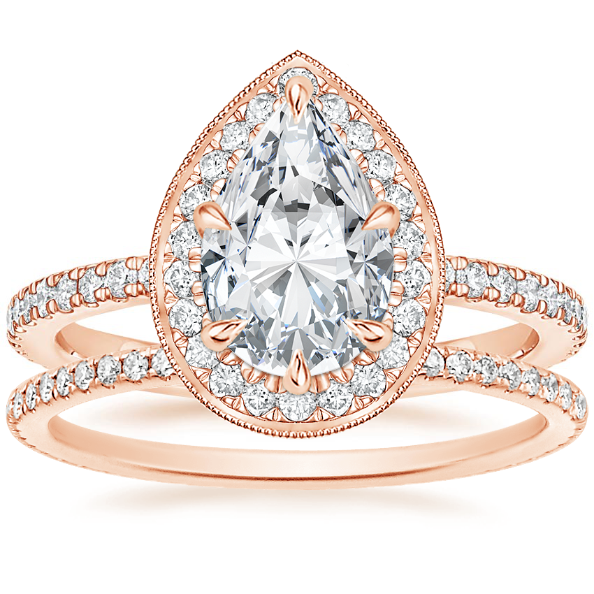 14K Rose Gold Vintage Waverly Diamond Ring (1/2 ct. tw.) with Whisper Eternity Diamond Ring (1/4 ct. tw.)