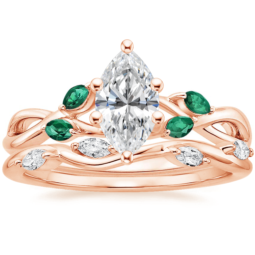 14K Rose Gold Willow Ring With Lab Emerald Accents with Winding Willow Diamond Ring (1/8 ct. tw.)