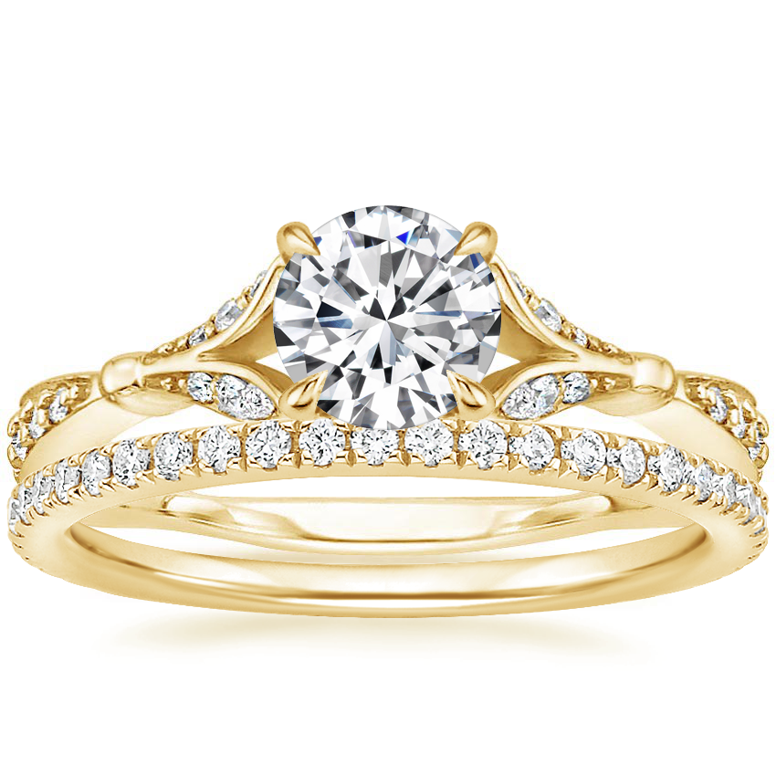 18K Yellow Gold Zinnia Diamond Ring (1/3 ct. tw.) with Luxe Ballad Diamond Ring (1/4 ct. tw.)