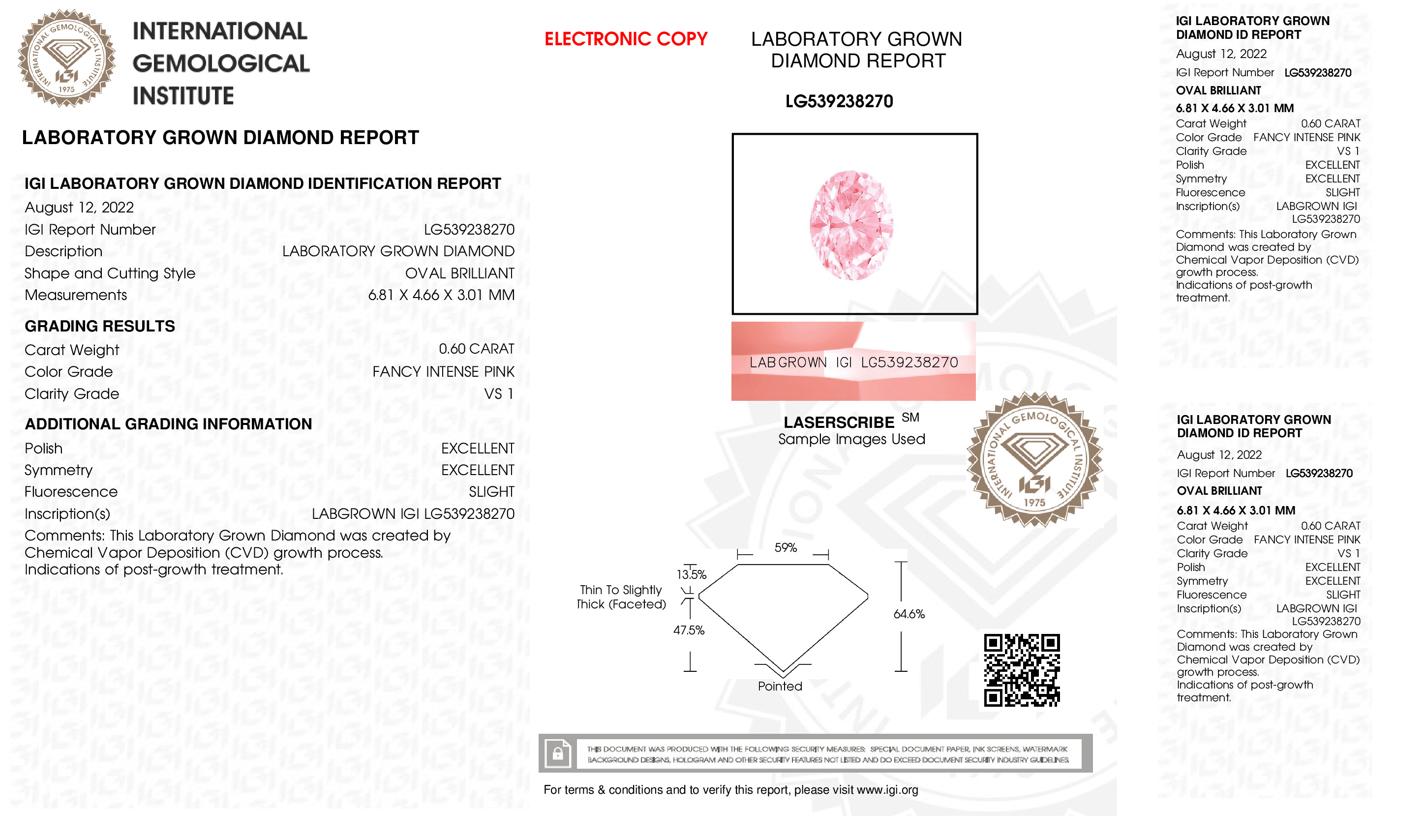 0.60 Ct. Fancy Intense Pink Oval Lab Grown Diamond