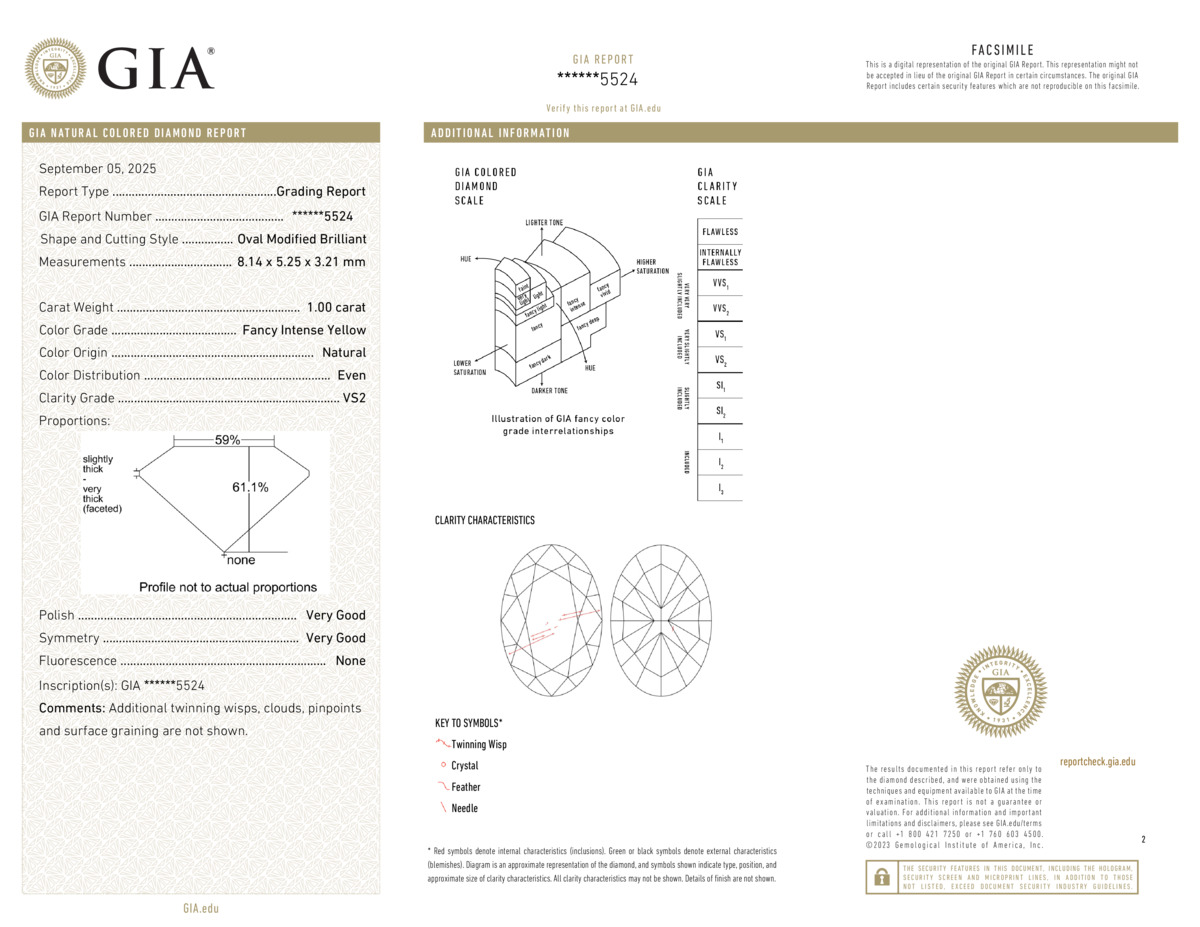 This Certified 1.00 Carat 8.14 x 5.25 x 3.21 mm Yellow Oval Diamond has been hand selected by our GIA-certified gemologists for its exceptional characteristics and rarity.