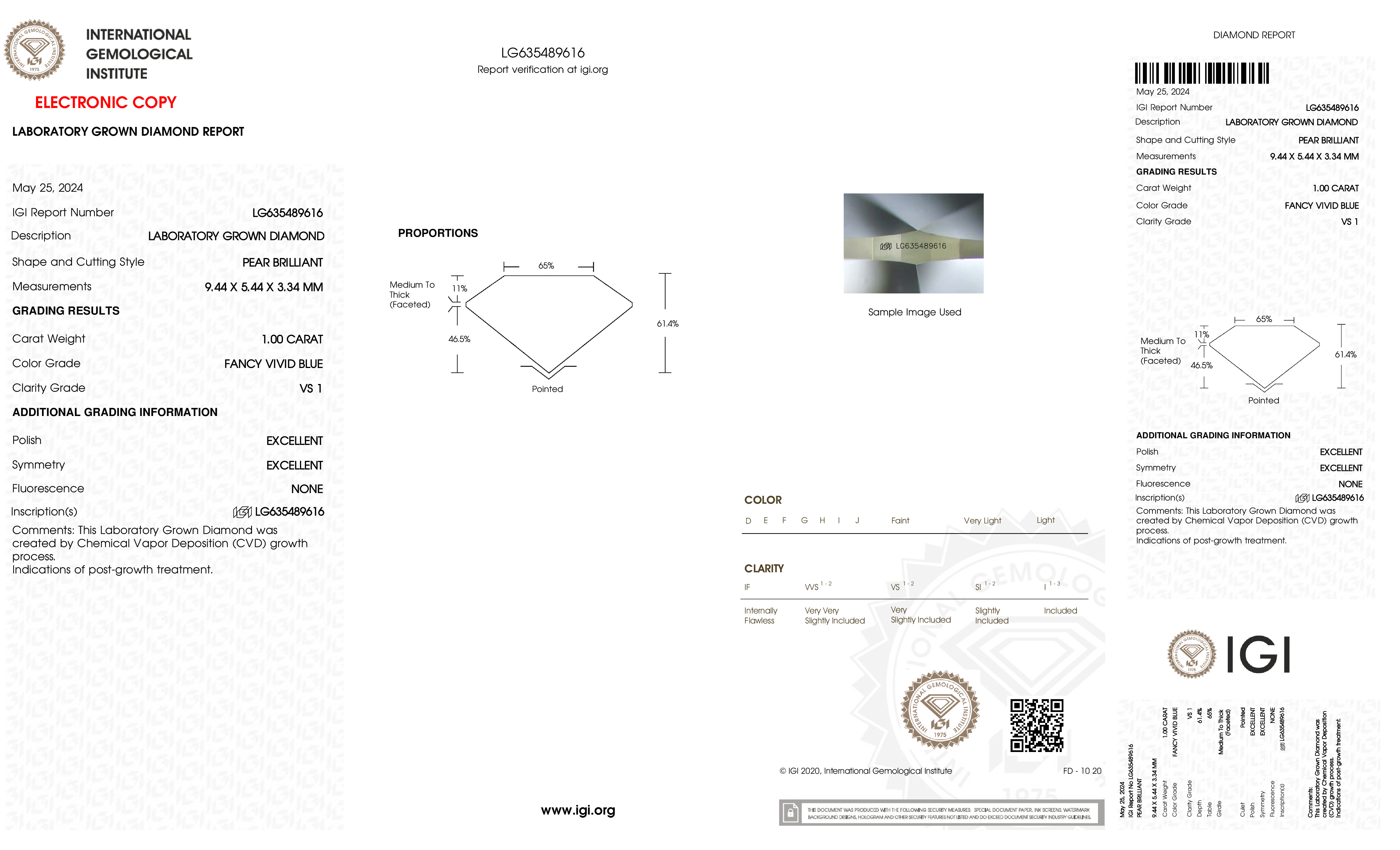 This Certified 1.00 Carat 9.44 x 5.44 x 3.34 mm Blue Pear Lab Grown Diamond has been hand selected by our GIA-certified gemologists for its exceptional characteristics and rarity.