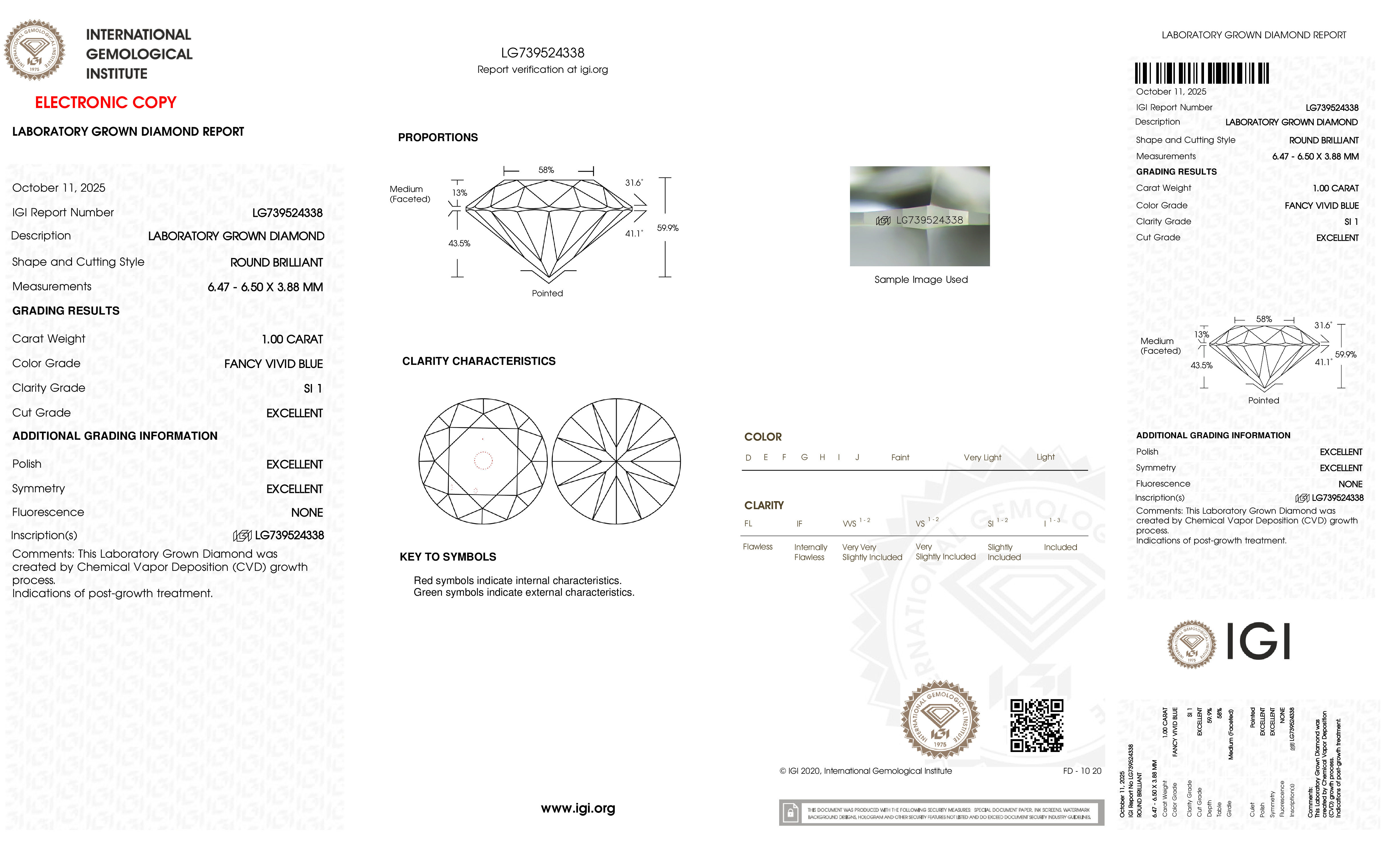 1.00 Ct. Fancy Vivid Blue Round Lab Grown Diamond