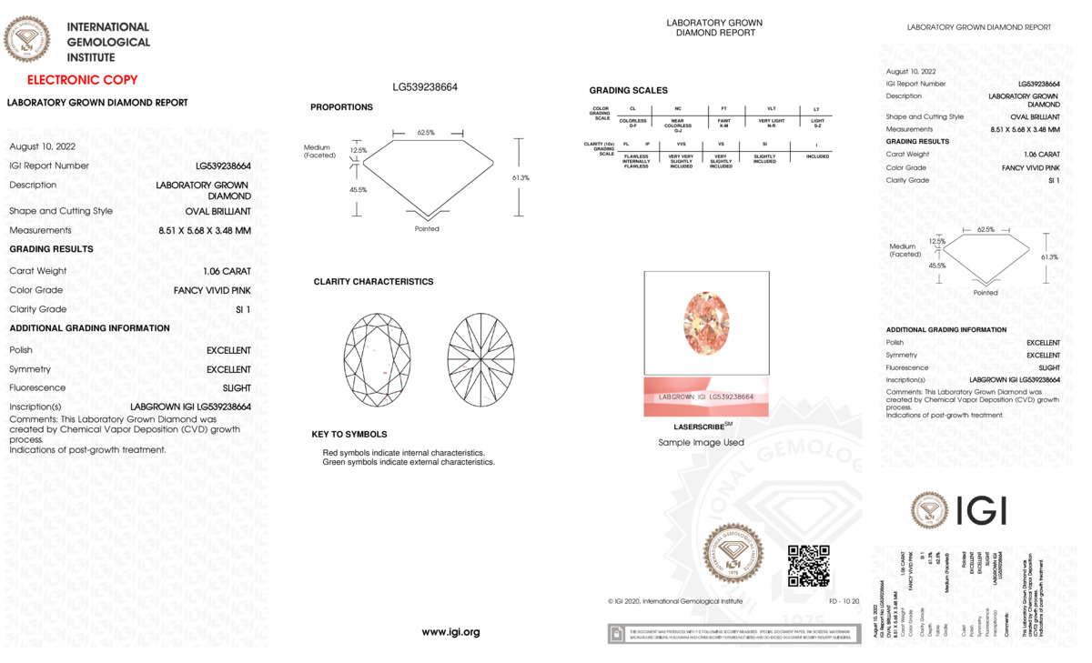 This Certified 1.06 Carat 8.51 x 5.68 x 3.48 mm Pink Oval Lab Grown Diamond has been hand selected by our GIA-certified gemologists for its exceptional characteristics and rarity.