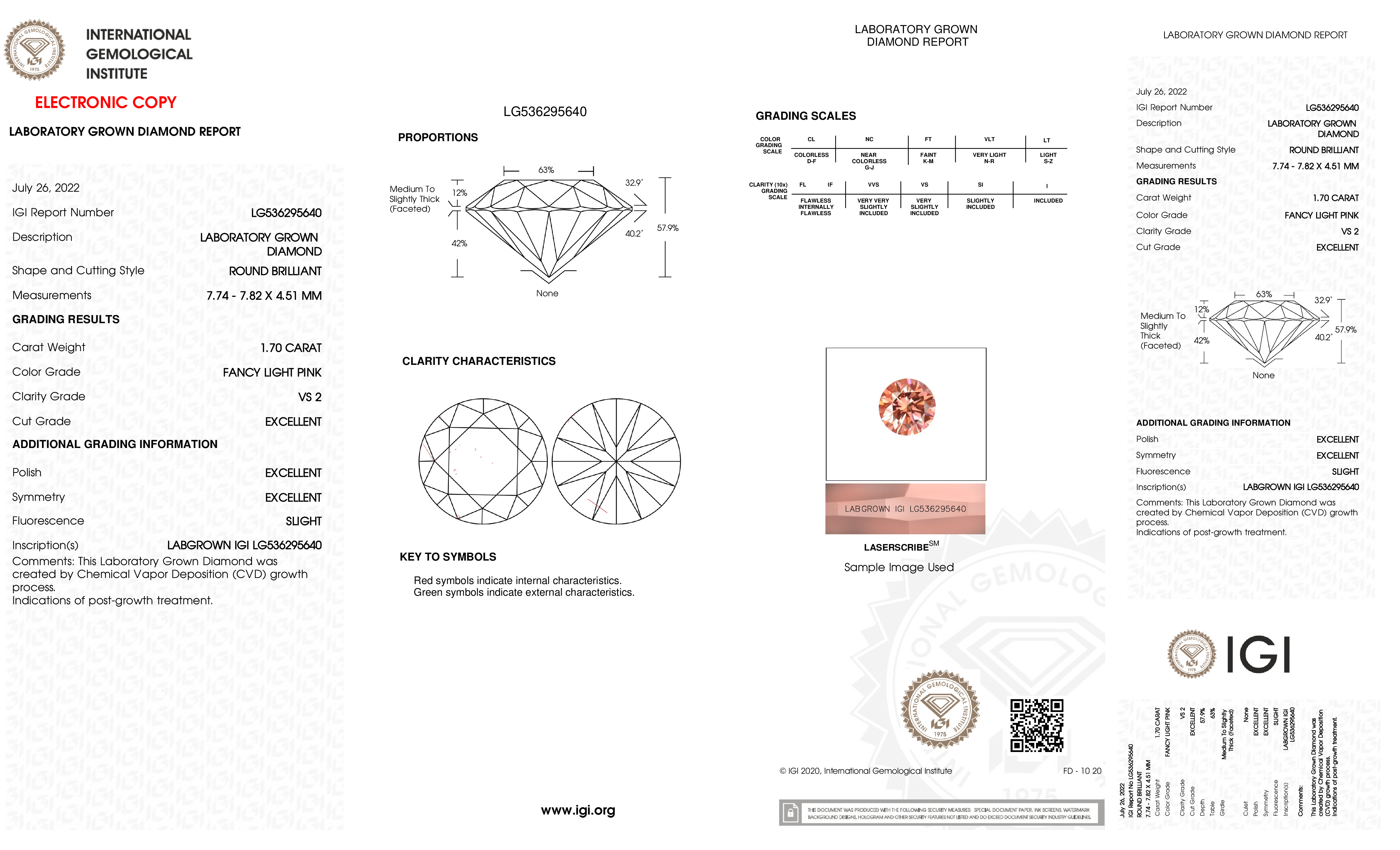 This Certified 1.70 Carat 7.82 x 7.74 x 4.51 mm Pink Round Lab Grown Diamond has been hand selected by our GIA-certified gemologists for its exceptional characteristics and rarity.