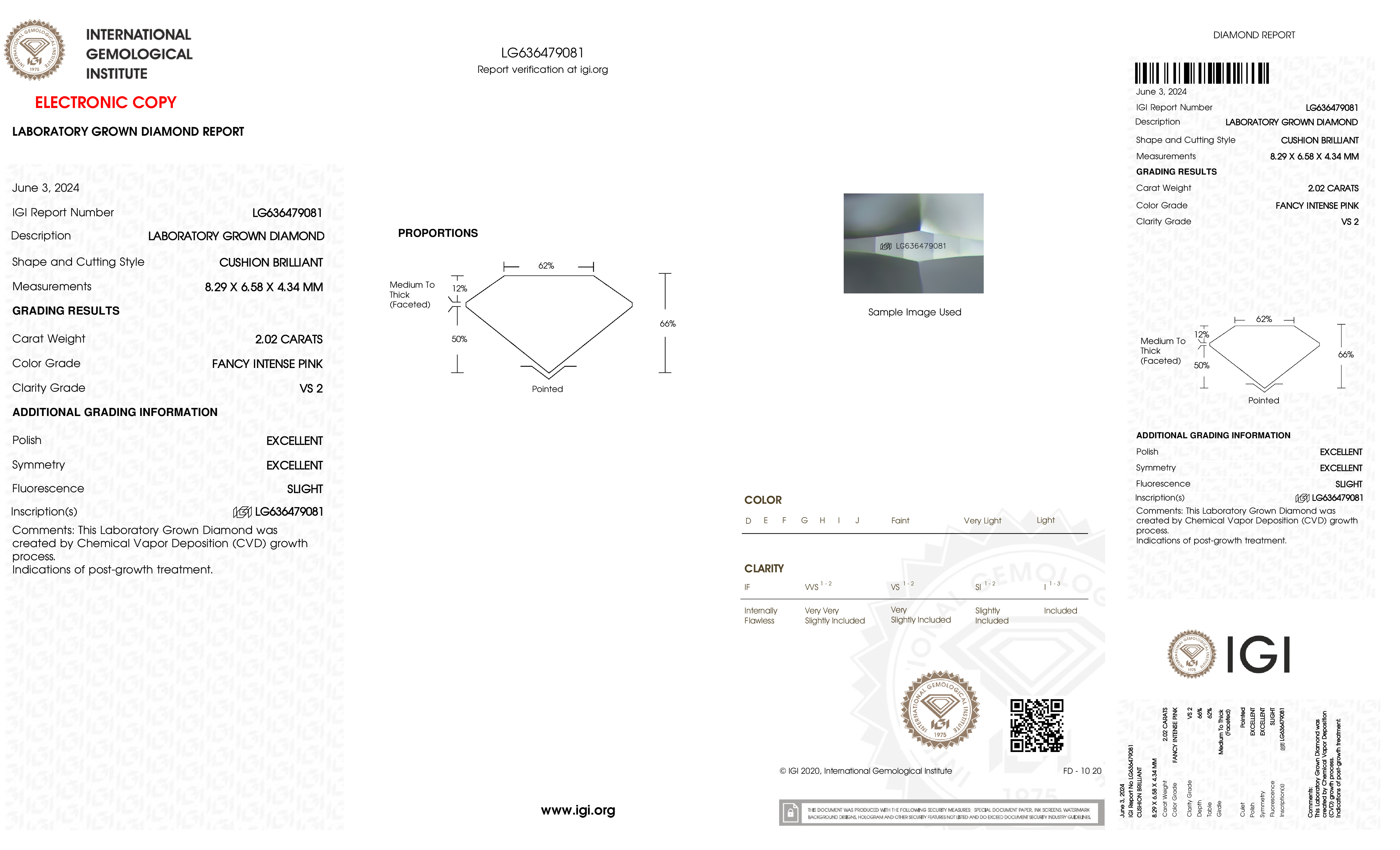 This Certified 2.02 Carat 8.29 x 6.58 x 4.34 mm Pink Cushion Lab Grown Diamond has been hand selected by our GIA-certified gemologists for its exceptional characteristics and rarity.