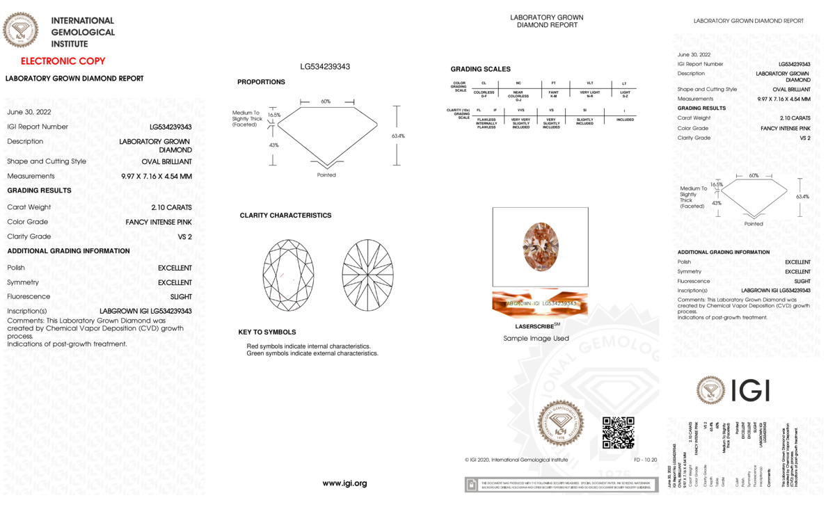 This Certified 2.1 Carat 9.97 x 7.16 x 4.54 mm Pink Oval Lab Grown Diamond has been hand selected by our GIA-certified gemologists for its exceptional characteristics and rarity.