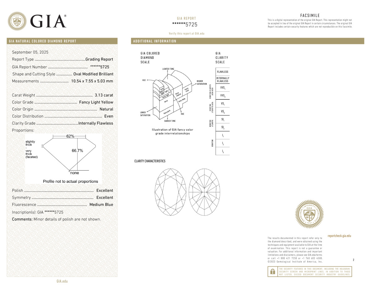 This Certified 3.13 Carat 10.54 x 7.55 x 5.03 mm Yellow Oval Diamond has been hand selected by our GIA-certified gemologists for its exceptional characteristics and rarity.
