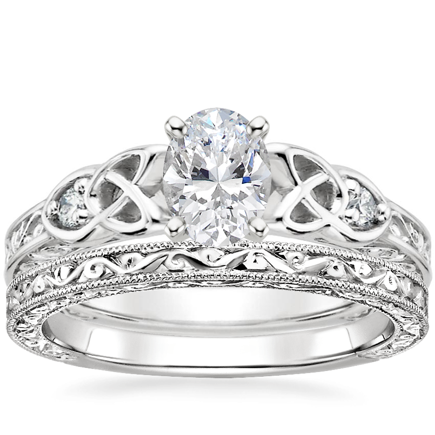 My fiance picked this ring based on my Irish heritage, and the Celtic knot rings I wear, knowing I would love its unique beautiful look! The scroll work makes the ring so elegant, the subtle Celtic knot is perfect, not too big, nor too small. I love how the knot frames the diamond. With all the intricate design, I thought the ring might appear a bit big, but it is petite and perfect in size! There is no ring anywhere as beautiful, and I'm so proud to wear it.