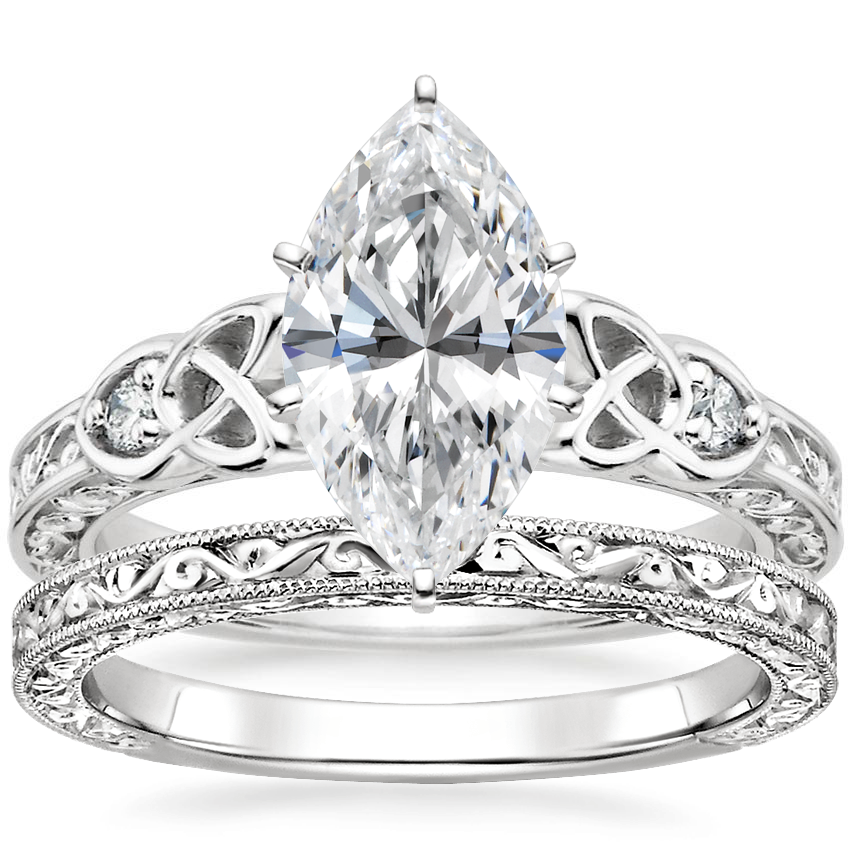 I love the combination of antique scroll and celtic knots. We chose to change out the side stones for sapphires.