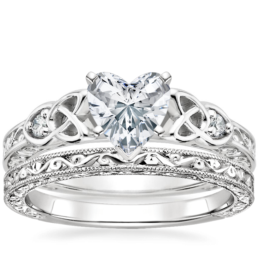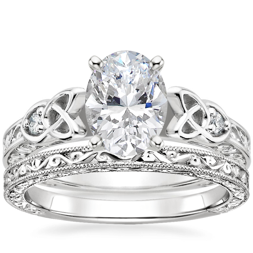 My fiance picked this ring based on my Irish heritage, and the Celtic knot rings I wear, knowing I would love its unique beautiful look! The scroll work makes the ring so elegant, the subtle Celtic knot is perfect, not too big, nor too small. I love how the knot frames the diamond. With all the intricate design, I thought the ring might appear a bit big, but it is petite and perfect in size! There is no ring anywhere as beautiful, and I'm so proud to wear it.