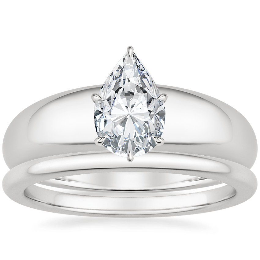 18K White Gold Adrian Ring with Petite Comfort Fit Wedding Ring