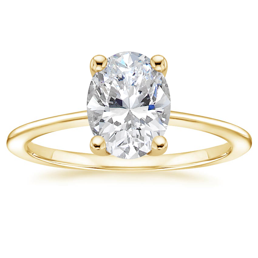 My fiancée wanted something timeless and understated. This ring is exactly that. The band is dainty but strong and the prongs are classically understated. My Aimee is platinum with a 1.66 carat for reference.