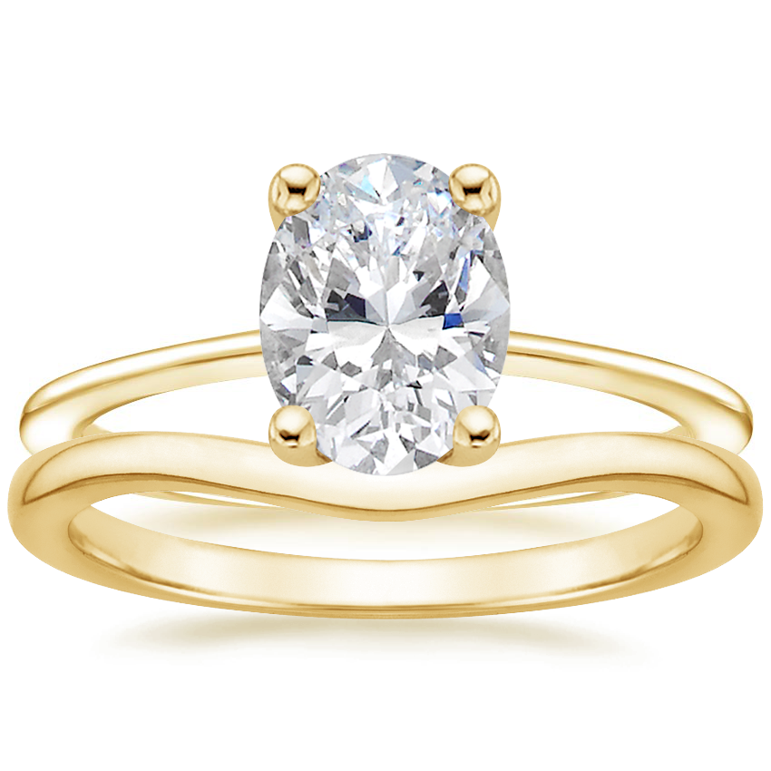 18K Yellow Gold Aimee Ring with Petite Curved Wedding Ring