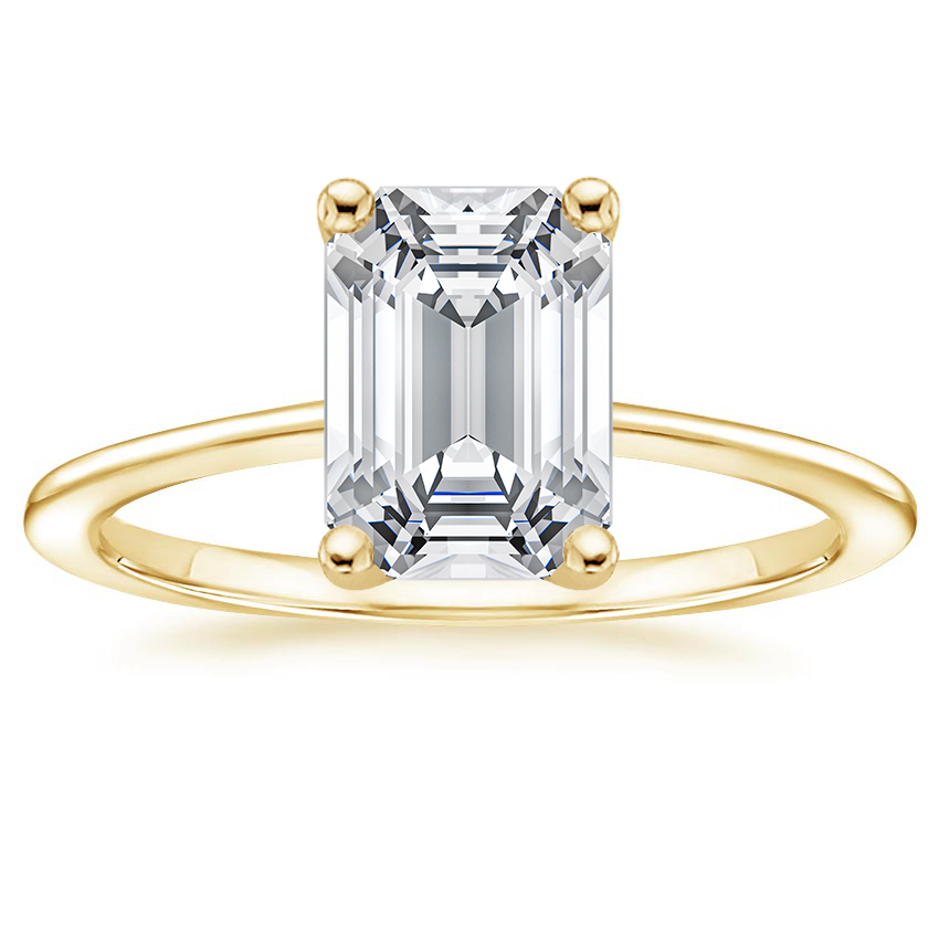 Ring 18K Gold Aimee Solitaire Size 5.25 1.51 Carat, Emerald, Super Ideal Cut, H Color, VVS2 Clarity I love this ring. I am typically size 5 but I went for 5.25 because I tend to swell. The band is my favorite strong but thin. 18 gold instead of 14 was a great call.