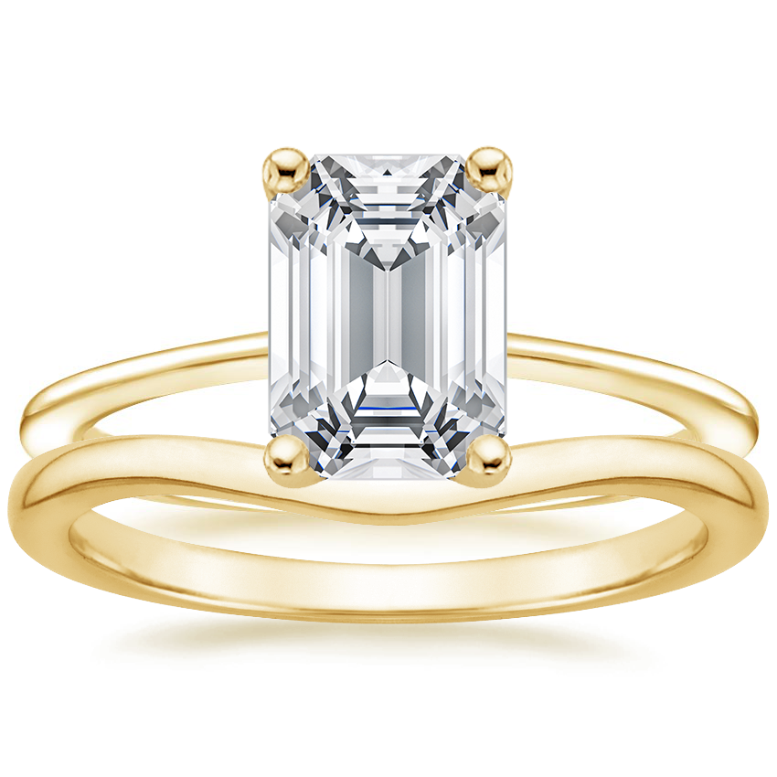 18K Yellow Gold Aimee Ring with Petite Curved Wedding Ring