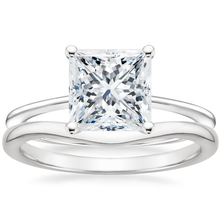 18K White Gold Aimee Ring with Petite Curved Wedding Ring
