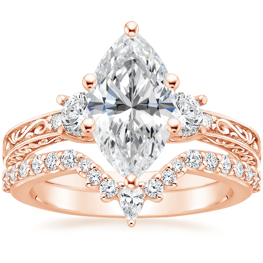 14K Rose Gold Antique Scroll Three Stone Trellis Lab Diamond Ring (1/3 ct. tw.) with Luxe Lunette Diamond Ring (1/3 ct. tw.) with 2.06 Carat Marquise Lab Grown Diamond