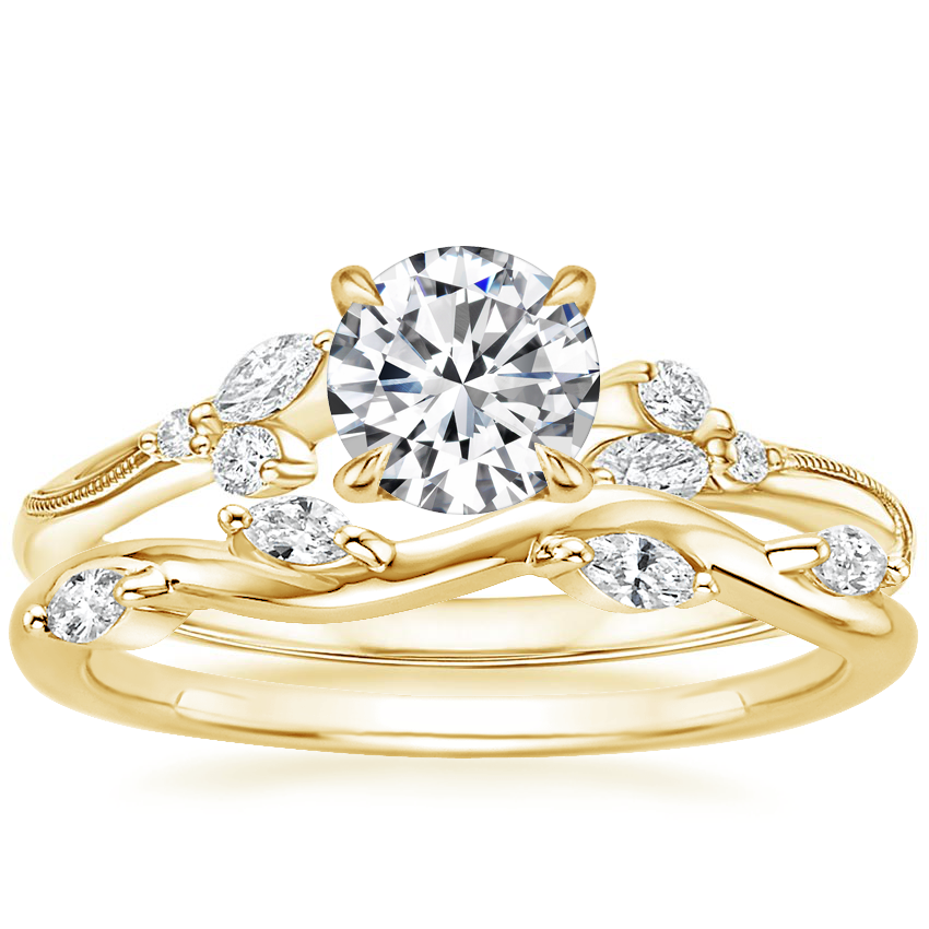 18K Yellow Gold Camellia Diamond Ring with Winding Willow Diamond Ring