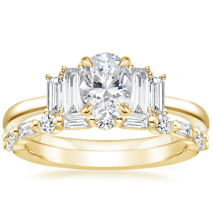 18K Yellow Gold Coppia Five Stone Diamond Ring (1/3 ct. tw.) with Harper Diamond Ring (1/3 ct. tw.)