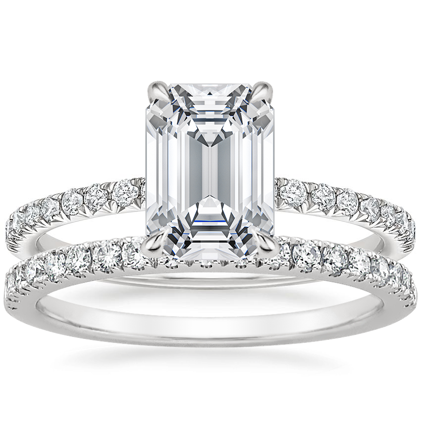 18K White Gold Delicate Amelie Diamond Ring with Bliss Diamond Ring (1/5 ct. tw.)