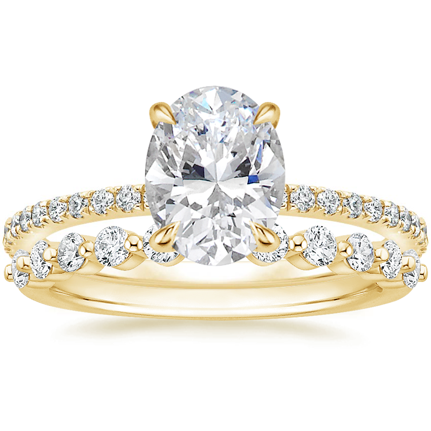 18K Yellow Gold Demi Lab Diamond Ring (1/3 ct. tw.) with Marseille Diamond Ring (1/3 ct. tw.) with 2.02 Carat Oval Lab Grown Diamond