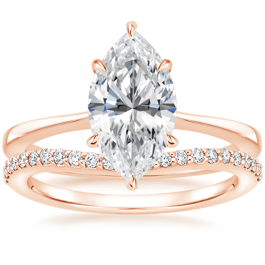 14K Rose Gold Elle Solitaire Ring with Curved Diamond Ring (1/6 ct. tw.)