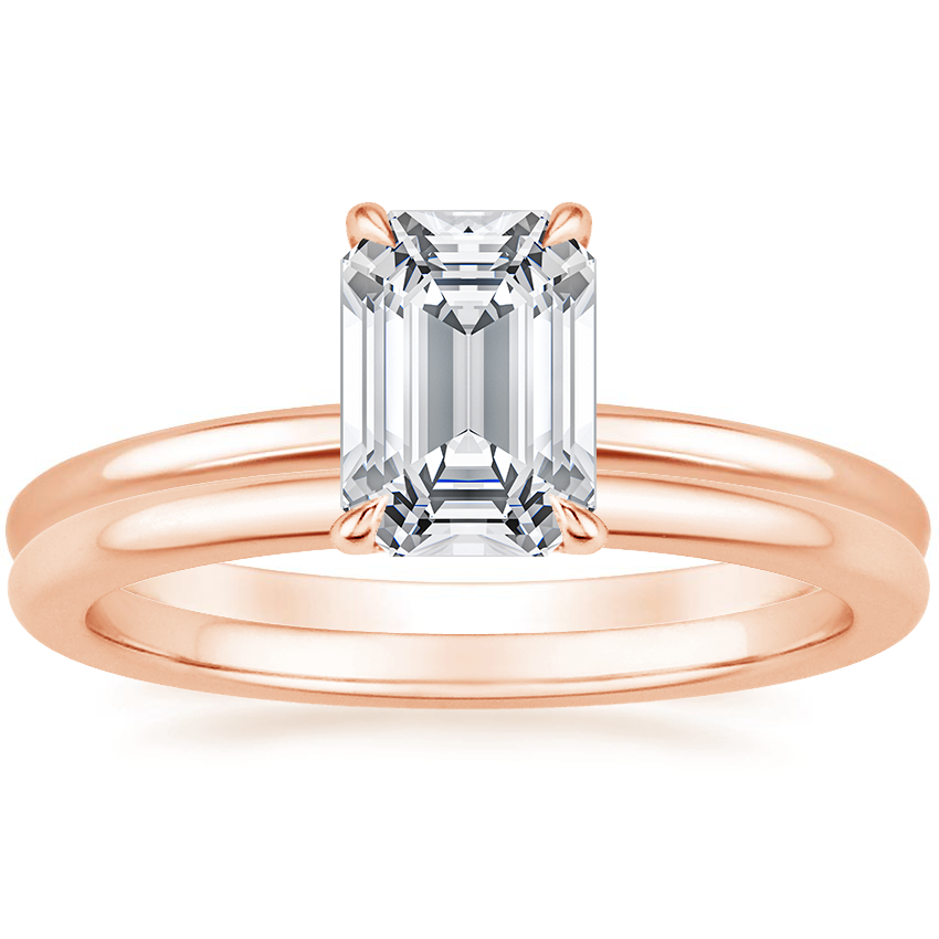 14K Rose Gold Flower Petal Diamond Ring with Petite Comfort Fit Wedding Ring