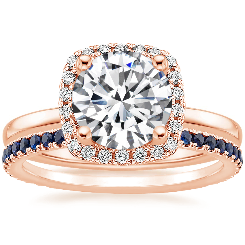 14K Rose Gold French Halo Diamond Ring with Luxe Ballad Sapphire Ring