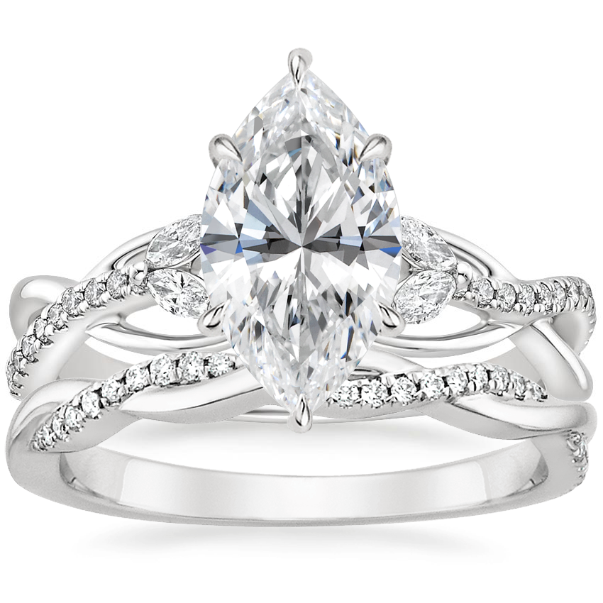18K White Gold Garland Diamond Ring with Petite Twisted Vine Diamond Ring (1/8 ct. tw.)