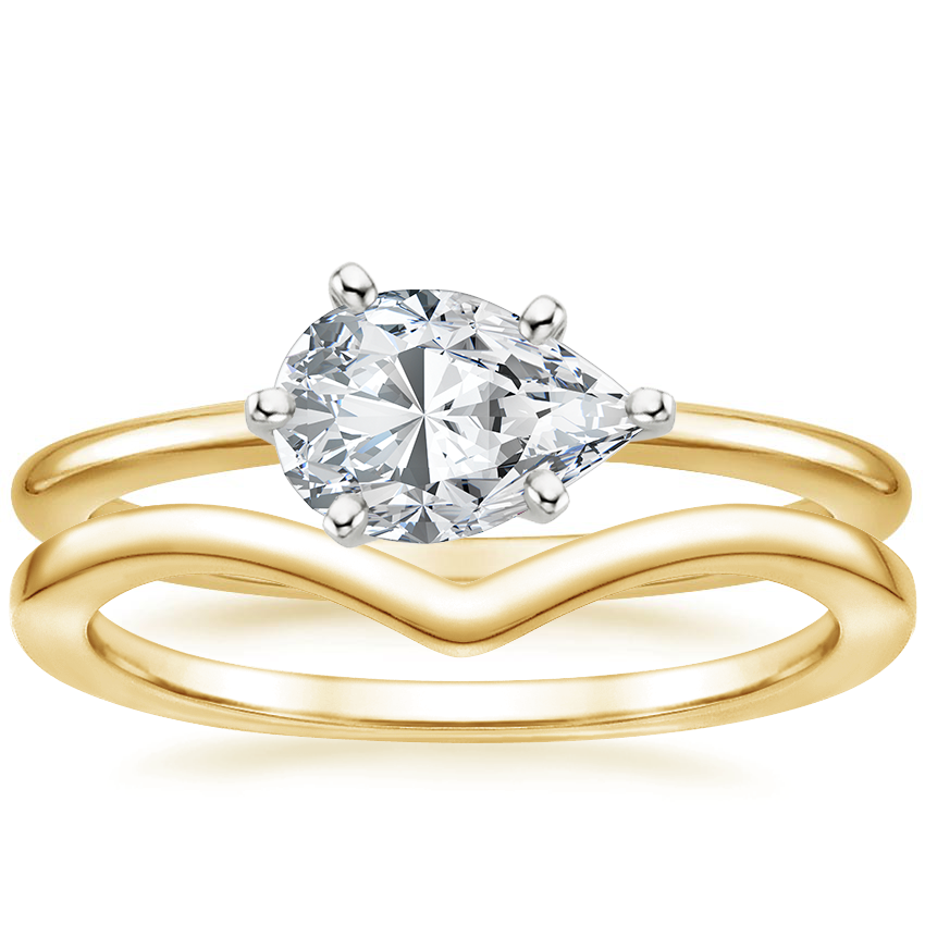 18K Yellow Gold Horizontal Petite Comfort Fit Ring with Chevron Ring