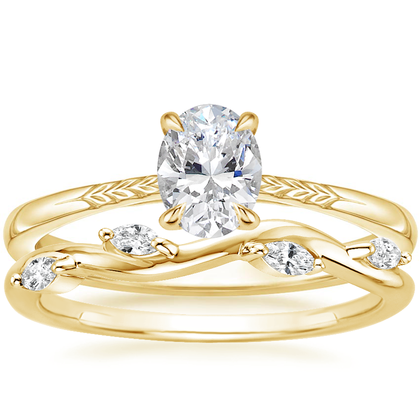 18K Yellow Gold Laurel Engraved Ring with Winding Willow Diamond Ring
