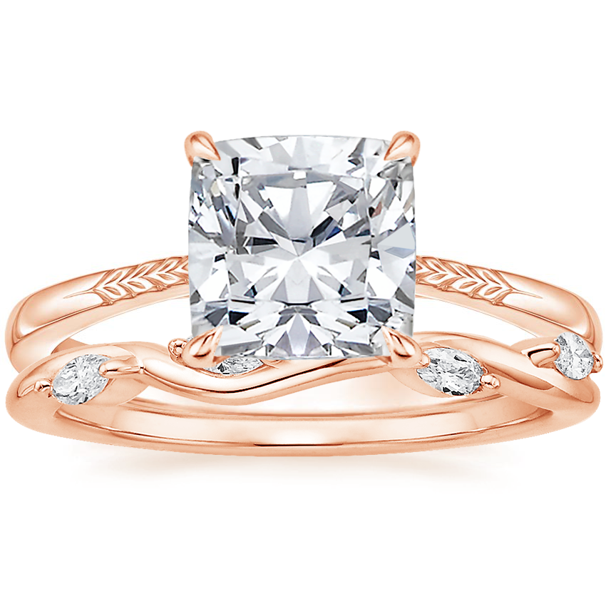 14K Rose Gold Laurel Engraved Ring with Winding Willow Diamond Ring with 2.91 Carat Cushion Lab Grown Diamond