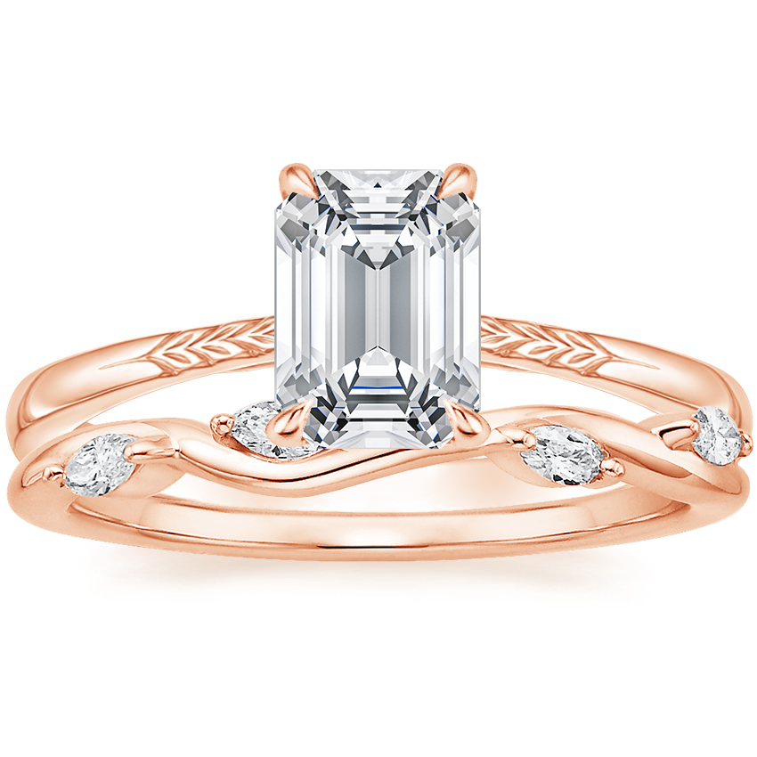 14K Rose Gold Laurel Engraved Ring with Winding Willow Diamond Ring