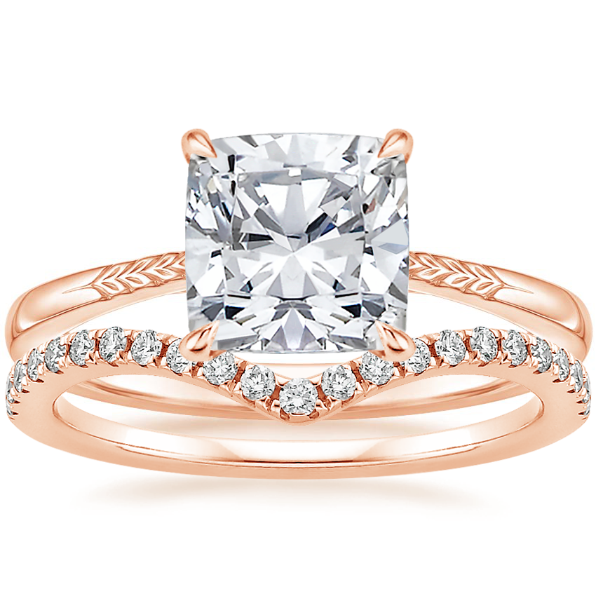 14K Rose Gold Laurel Ring with Flair Diamond Ring (1/6 ct. tw.) with 2.91 Carat Cushion Lab Grown Diamond
