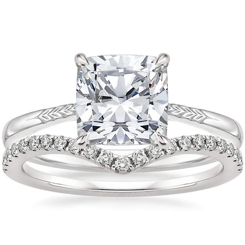 18K White Gold Laurel Ring with Flair Diamond Ring (1/6 ct. tw.) with 2.91 Carat Cushion Lab Grown Diamond