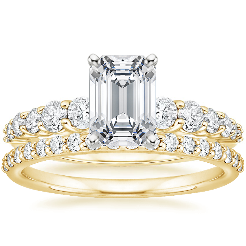 18K Yellow Gold Luciana Diamond Ring (1/2 ct. tw.) with Petite Shared Prong Diamond Ring (1/4 ct. tw.)