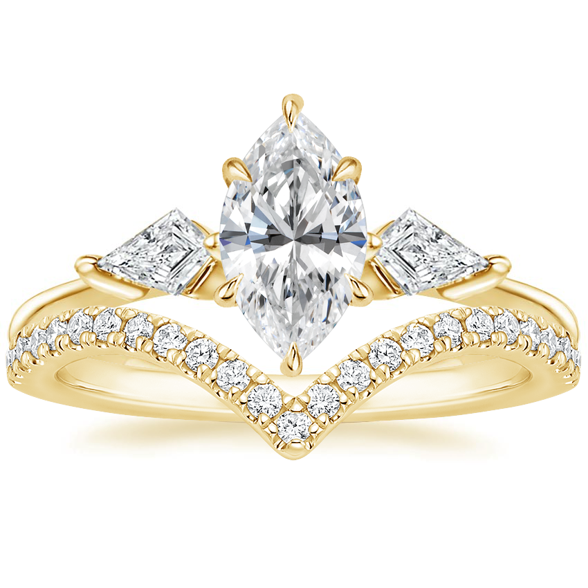 18K Yellow Gold Luxe Cometa Diamond Ring (1/3 ct. tw.) with Elongated Luxe Flair Diamond Ring