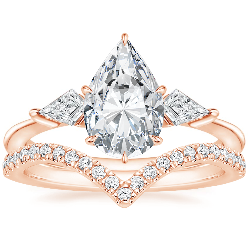 14K Rose Gold Luxe Cometa Diamond Ring (1/3 ct. tw.) with Elongated Luxe Flair Diamond Ring