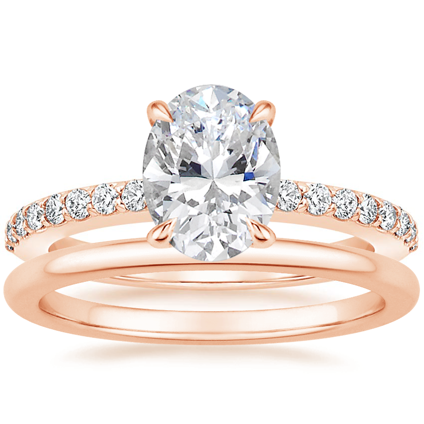 14K Rose Gold Luxe Elodie Diamond Ring (1/4 ct. tw.) with Petite Comfort Fit Wedding Ring