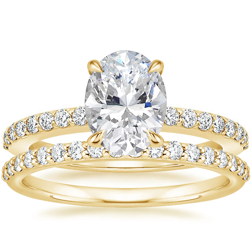 18K Yellow Gold Luxe Elodie Diamond Ring (1/4 ct. tw.) with Petite Shared Prong Diamond Ring (1/4 ct. tw.)