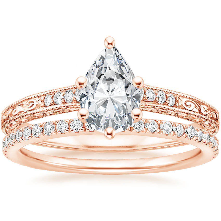 14K Rose Gold Luxe Hudson Lab Diamond Ring (1/10 ct. tw.) with Luxe Ballad Diamond Ring (1/4 ct. tw.) with 0.75 Carat Pear Lab Grown Diamond