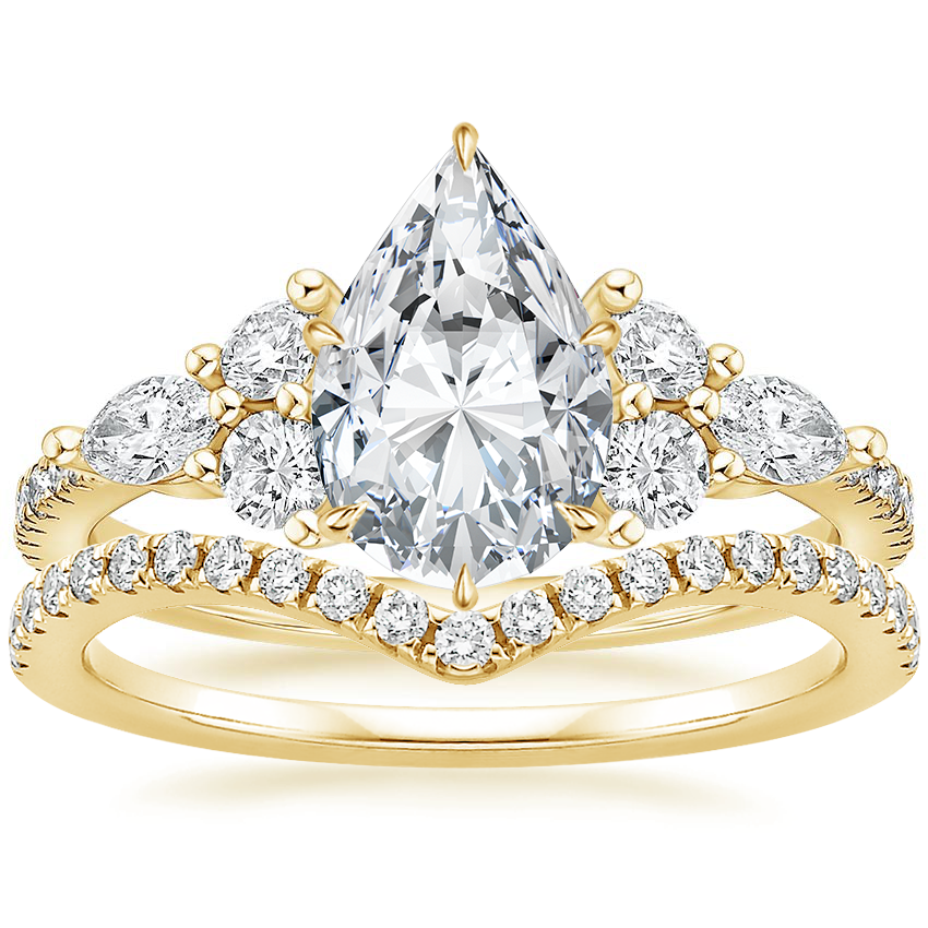 18K Yellow Gold Luxe Nadia Lab Diamond Ring (1/2 ct. tw.) with Flair Diamond Ring (1/6 ct. tw.) with 1.09 Carat Pear Lab Grown Diamond