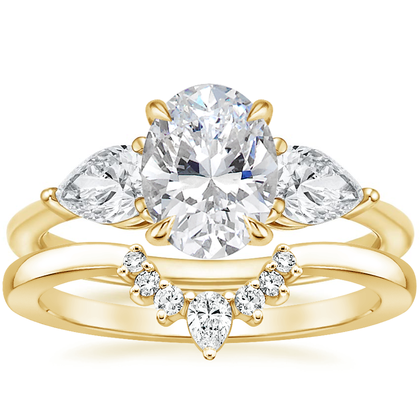 18K Yellow Gold Luxe Opera Three Stone Diamond Ring with Lunette Diamond Ring