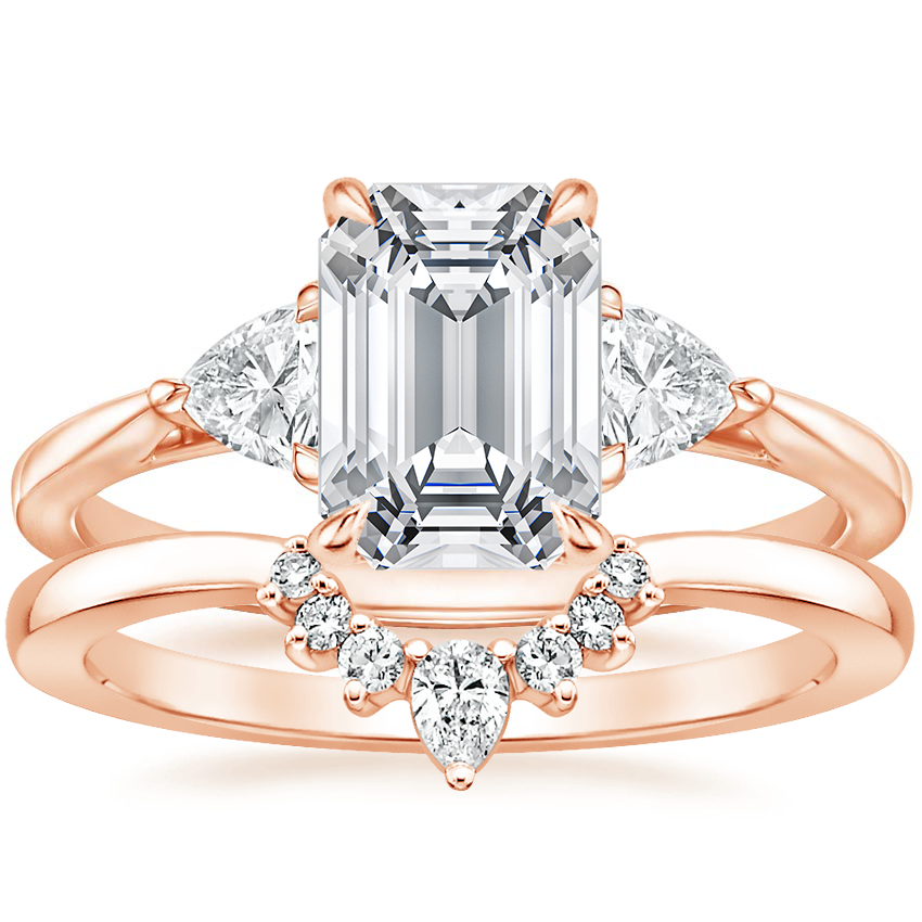 14K Rose Gold Luxe Trillion Cut Three Stone Diamond Ring with Lunette Diamond Ring