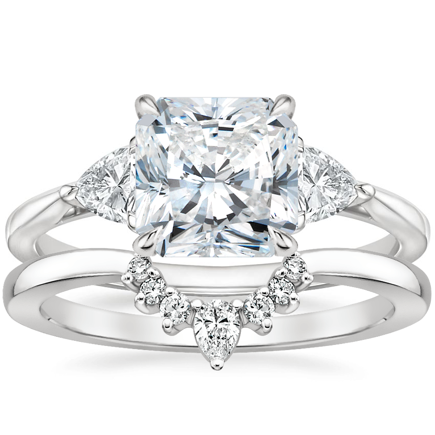 18K White Gold Luxe Trillion Cut Three Stone Diamond Ring with Lunette Diamond Ring