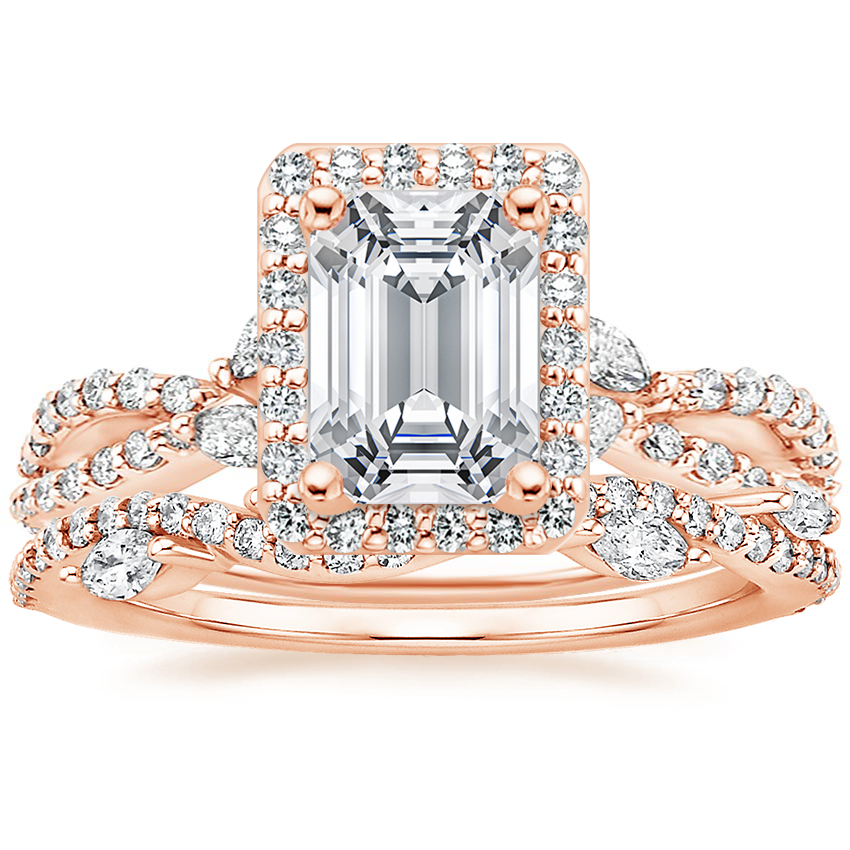 14K Rose Gold Luxe Willow Halo Diamond Ring (1/2 ct. tw.) with Luxe Winding Willow Diamond Ring (1/4 ct. tw.)