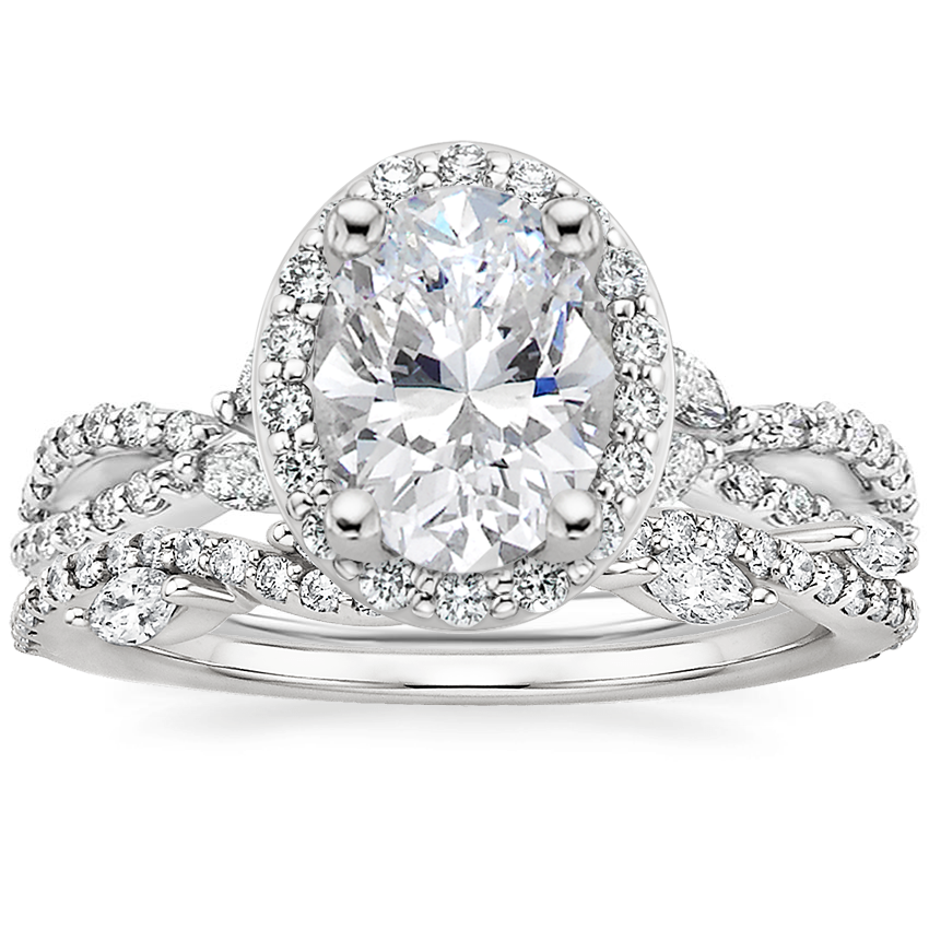 18K White Gold Luxe Willow Halo Diamond Ring (1/2 ct. tw.) with Luxe Winding Willow Diamond Ring (1/4 ct. tw.)