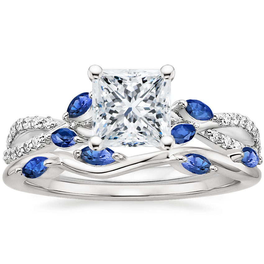 18K White Gold Luxe Willow Sapphire and Diamond Ring (1/8 ct. tw.) with Winding Willow Sapphire Ring