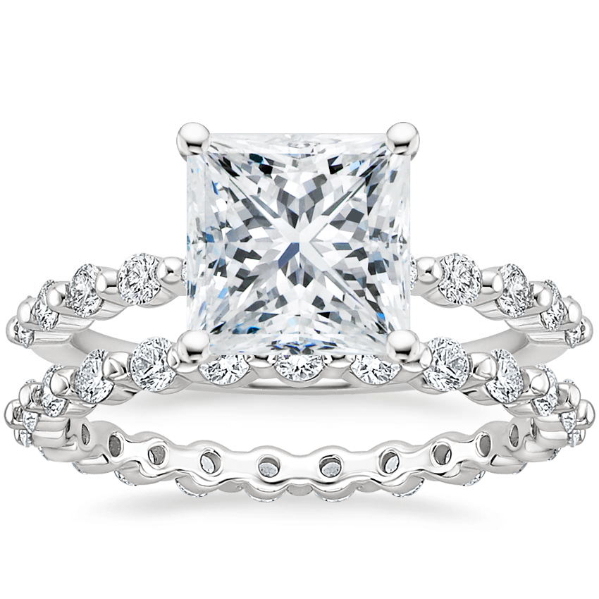 Marseille Diamond Ring (1/4 ct. tw.) with Marseille Eternity Diamond Ring (2/3 ct. tw.) in 18K White Gold